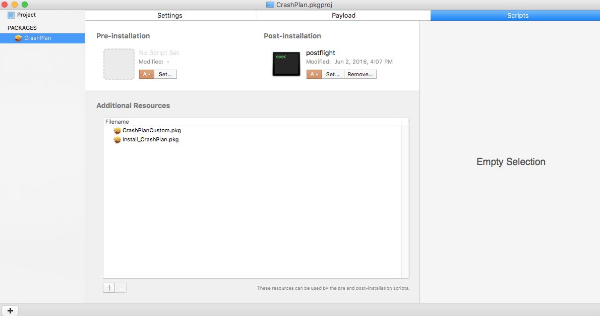 I was working on automated CrashPlan package for Casper, the official document from Casper is very helpful, but unfortunately didn’t work on our Casper. so I actually used my own way to package CrashPlan.